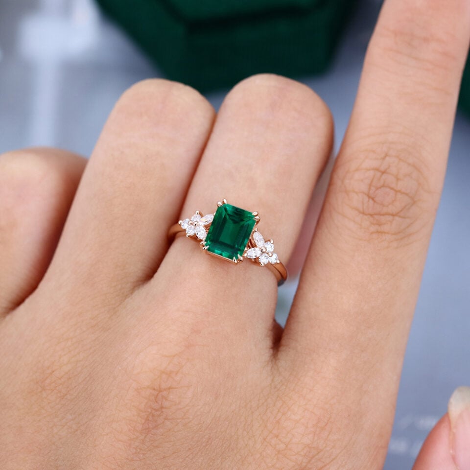 TYPE: Lab Emerald SIZE: 6*8 mm SHAPE: Emerald WEIGHT: 1.7 ct |