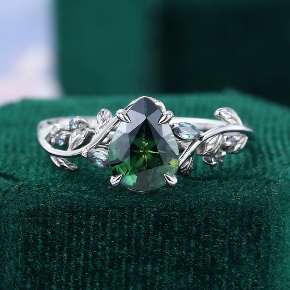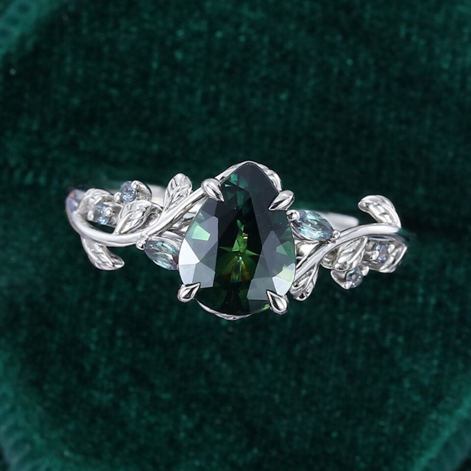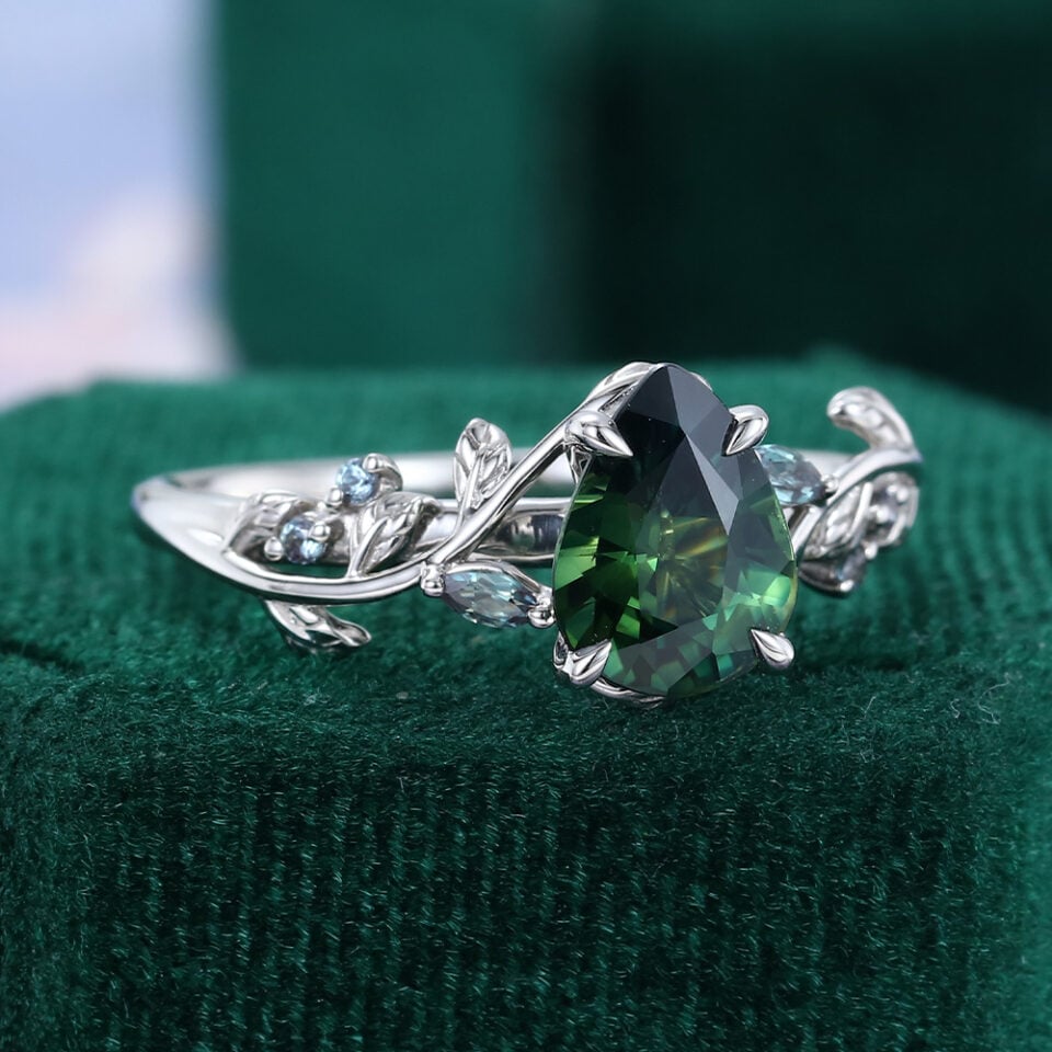 LeafLace | Pear Cut Teal Sapphire & Alexandrite Engagement Ring